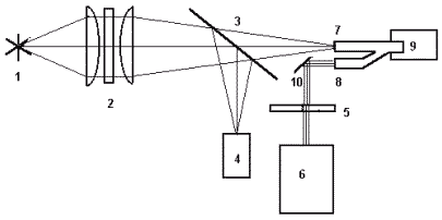 Принцип работы сигнализатора основан на модификации фотолюминесцентного метода определения нефтепродуктов и иллюстрируется работой оптической и функциональной схем. Оптическая схема сигнализатора состоит из канала возбуждения люминесценции, опорного канала и канала регистрации. Рис.1. Оптическая схема сигнализатора ![]()